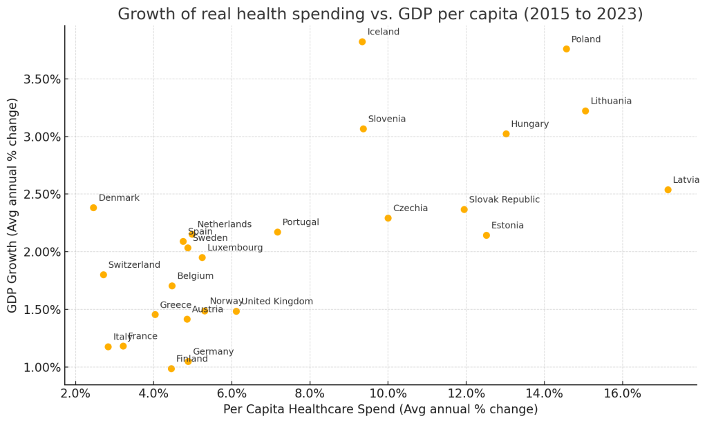 Growth in per capita healthcare spend has significantly outpaced GDP growth in nearly all European countries